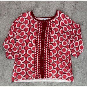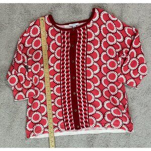 Isaac Mizrahi Live! Womens Red/White Geometric Button Front Cardigan Sweater 1X