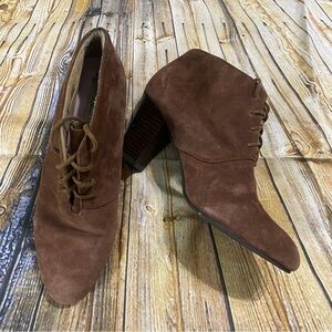 Isaac Mizrahi Live! Womens Size 8 Brown Suede Heeled Lace Up Booties