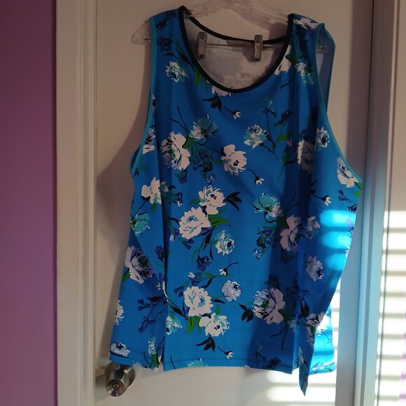 Isaac Mizrahi Live Women's Soho Floral Print Tank Top Blue SZ 5X