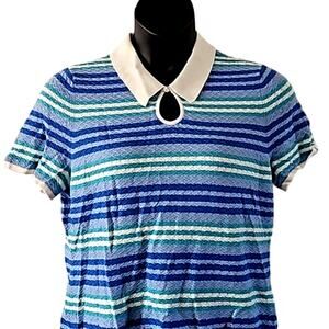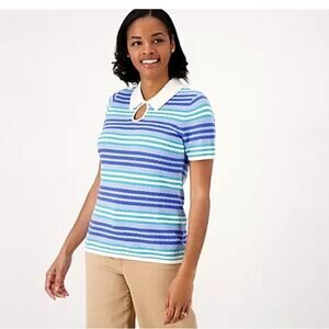 Isaac Mizrahi Live! Women's Stripe Polo Sweater with Keyhole Collar – Size Large