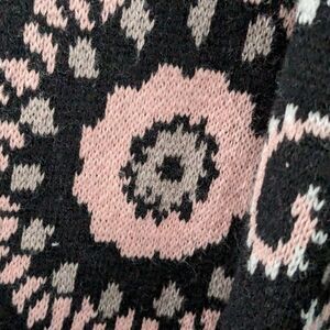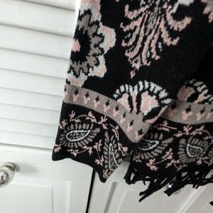Isaac Mizrahi Live! Women's sz XS Fringe Black/Pink Floral Open Cardigan Pockets