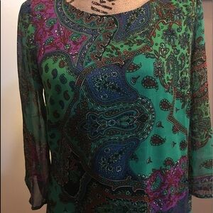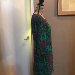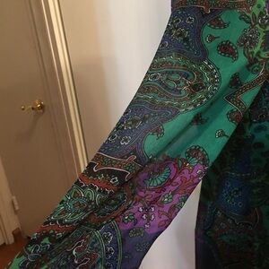 Cute dress. Like new only worn a few times. The sleeves are soft and translucent. Can be machine washed on gentle cycle. Great dress for spring or fall and very comfortable