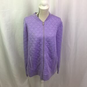 Isaac Mizrahi Live soho Quilted Zip Front Knit Bomber Jacket Soft Purple Small