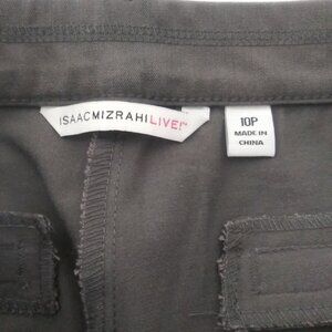 Isaac Mizrahi Live gray pants, zipper and eye hook closure, stretchy, front pockets, flaux back pockets