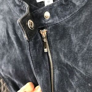Isaac Mizrahi Live leather jacket. Great condition. Minimal signs of wash and wear. Navy leather. Size 10. Silver hardware. Side pockets. Smoke free home.
