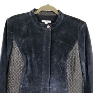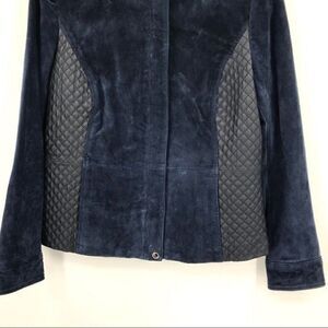 Isaac Mizrahi Live navy long sleeves leather jacket zipper closure women size 10