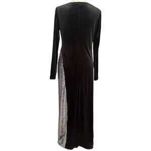 Isaac Mizrahi M Black Velvet Long Sleeve Silver Sequin Side Panel Evening Gown