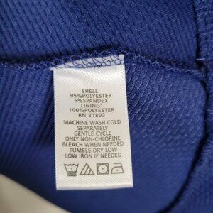 Shell: 95% Polyester, and 5% Spandex. Lining is 100% polyester. Machine wash.