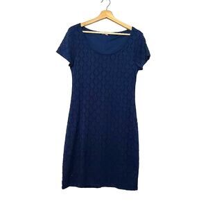 Isaac Mizrahi | Navy Lace Sheath Short Sleeve Dress