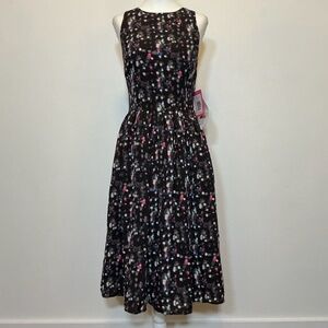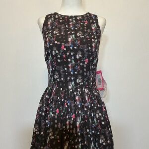 Isaac Mizrahi New York Tokyo Fit & Flare Midi Dress Black Multi Size 6 NWT
