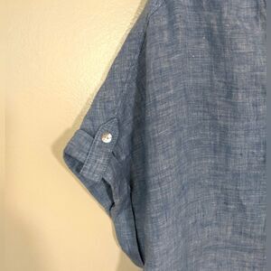 Isaac Mizrahi New York Top Blue 100% Linen V-Neck Oversized Lagenlook Small