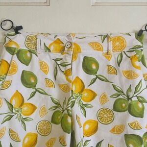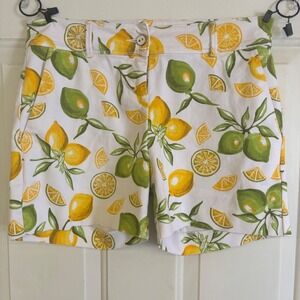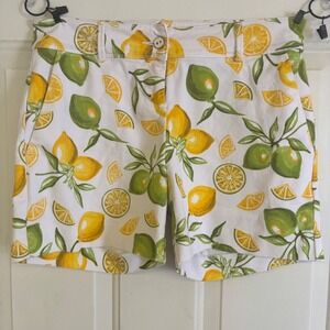 Isaac Mizrahi New York Women's Shorts Size 6 White Lemon Citrus Print Flat Front