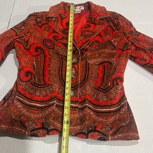 Isaac Mizrahi Paisley burnt orange corderoy Blazer paisley w buttons & pockets