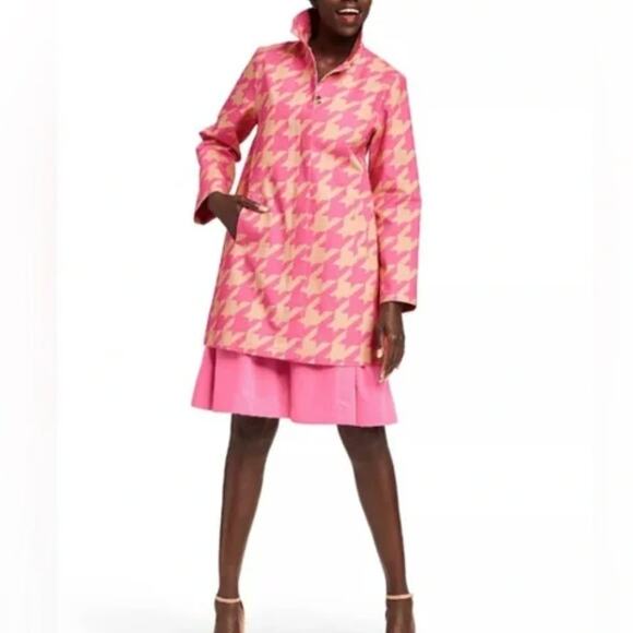 Isaac Mizrahi Pink Plaid Houndstooth Trenchcoat Jacket Coat Large Barbiecore