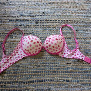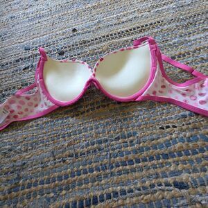 Isaac Mizrahi Pink Polka Dot Bra 34B Push Up Cleavage Cute Sexy Cottagecore