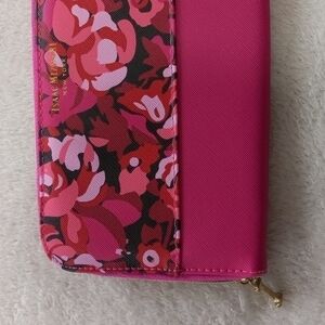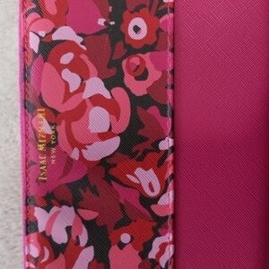 Isaac Mizrahi pink and red floral print cosmetic/make up case