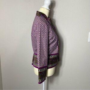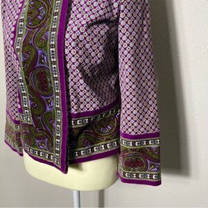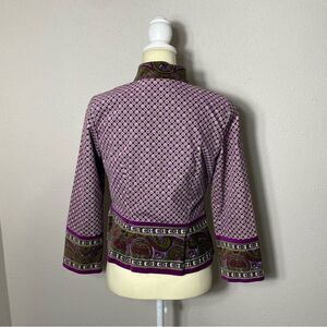 Isaac Mizrahi Purple Paisley Printed Standing Collar Velvet Blazer Women's Small