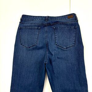 Isaac Mizrahi Raw Hem Straight Leg Women's size 10 Dark Wash Blue Denim Jeans