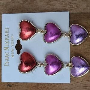 Isaac Mizrahi Red and Pink Heart Drop Dangle Earrings
