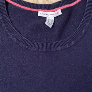 Isaac Mizrahi Ruffle Navy Blouse size Large