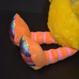 2019 Macy's Isaac Mizrahi Loves Sesame Street Big Bird Plush Stuffed Animal Doll Toy Lovey. Measures about 17" tall. His feet are striped multi-color and his entire fur has silver shiny thread throughout. No tush tag, but the side tag is present. From smoke free home and in excellent condition.