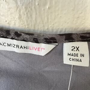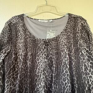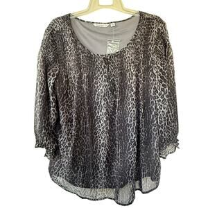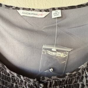 Isaac Mizrahi Sheer Smocked Sheer Linee Babydoll top Black & gray Size 2X