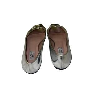 Isaac Mizrahi Silver Peep Toe Flats Ballerina Patent Leather Size 7 Made Italy