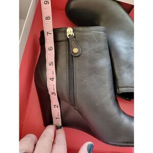 Isaac Mizrahi Size 8.5 VICKY Leather Wedge Ankle Booties Black