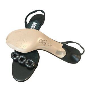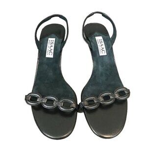 isaac mizrahi Women Slingback Heel Sandals Chrome Leather Open Toe Italy SZ 9.5