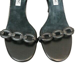 Isaac Mizrahi Size 9.5 Slingback Metallic Gray Leather Heel Sandals Italy