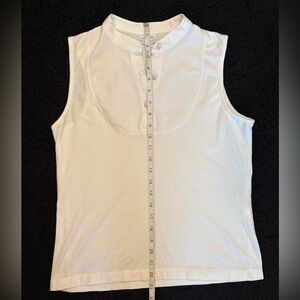 Chic cream tank top by Isaac Mizrahi. Features a sleeveless design with a buttoned neckline. Perfect for versatile styling.