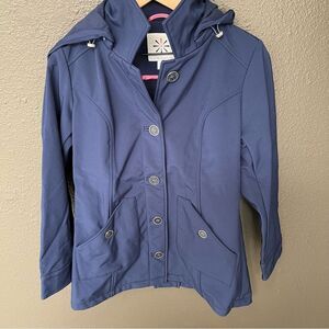 Isaac Mizrahi Soft Shell Jacket Detachable Hood in Dark Navy | size XS
