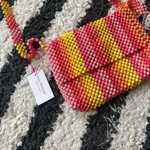 Add a pop of color to your outfit with this vibrant beaded bag. Perfect for any occasion. This listing is for a fantastic Isaac Mizrahi Starburst Pixel Beaded Crossbody Bag Multicolor Stripe Pink Yellow!