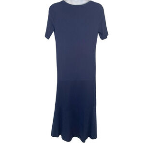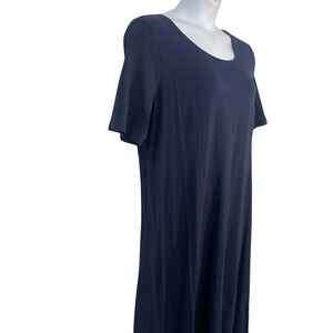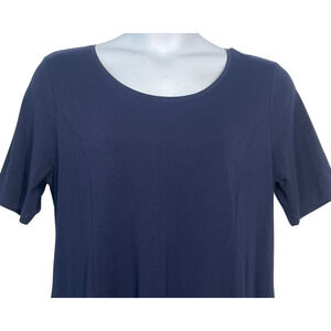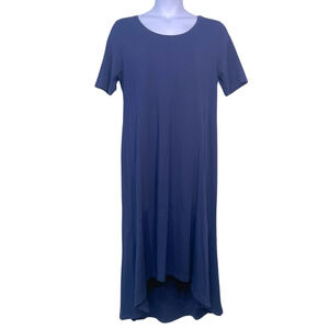 Isaac Mizrahi Sz L-XL Maxi Dress Short Sleeves Hi-Low Hem Stretch Knit Navy Blue