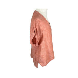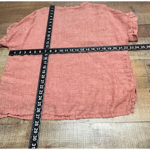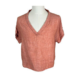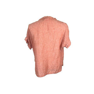 Isaac Mizrahi Top Womens Large Orange 100% Linen Roll Tab Pullover Blouse