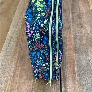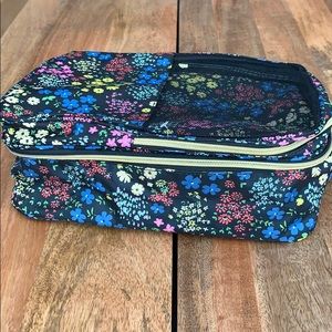 Floral Shoe Bag for keeping your suitcase organized and your clothes clean. 13x9x5. Two compartments - one large enough for multiple pairs with built in dividers to prevent scuffing (3 in deep). Outer zip pouch with mesh lining.