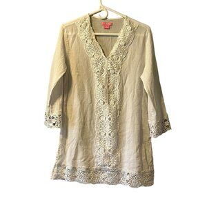 Isaac Mizrahi Women Crochet Tunic Gauze Style Top Boho Peasant Beach Size Small