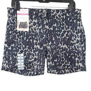Isaac Mizrahi Women Tailored Shorts NEW 5" Inseam Black Animal Print Stretch