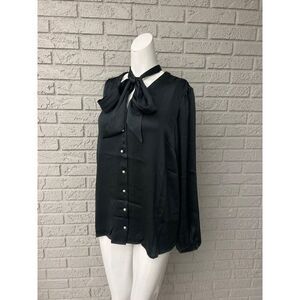 • Isaac Mizrahi Women Textured Satin Long Sleeve Blouse