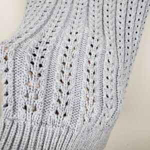 Gray open weave top,100% cotton, super soft, with a square neckline and short sleeves. Soft and comfortable knit fabric, ideal for casual or office looks with a touch of elegance. Flattering cut that adapts well to different styles and occasions. In excellent condition, easy to combine with jeans, trousers, or skirts. excellent condition.