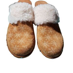Isaac Mizrahi Women's Oak Floral Suede Shearling Lined Mule Clog Size 8.5