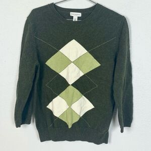 Isaac Mizrahi Wool Blend Argyle Green 3/4 Sleeve Sweater