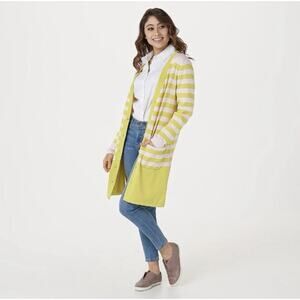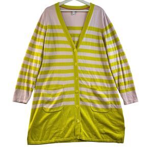 Isaac Mizrahi XL Stripe Button Front Cardigan Sweater Long Duster Green Pink
