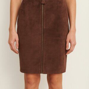 Elevate your wardrobe with this Isaac Mizrahi for Target brown suede pencil skirt, designed with a sleek front full-zip closure and subtle tassel detail. The soft, luxe suede fabric adds timeless sophistication while the tailored silhouette flatters your figure, making it perfect for workwear, date nights, or fall layering. Pair it with blouses, knits, or boots for an effortlessly polished look.
