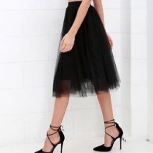 This elegant black tulle skirt is perfect for any party occasion. Its classic design offers a timeless look that pairs well with any top. Add a touch of sophistication to your wardrobe with this versatile skirt.