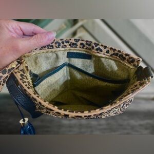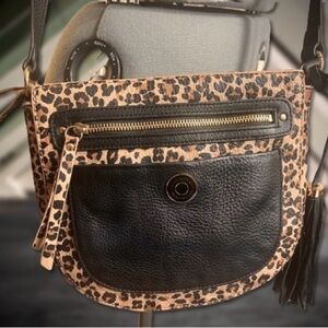 Isaac Mizrahi genuine pebble leather animal print crossbody bag