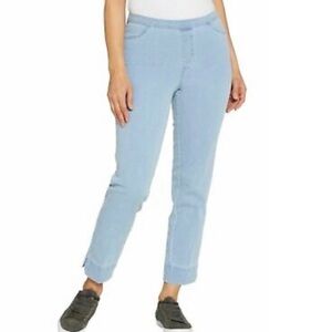 Isaac Mizrahi pull on elastic waist ankle jeans light wash mid rise size…