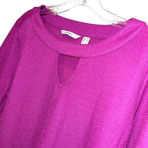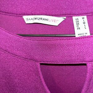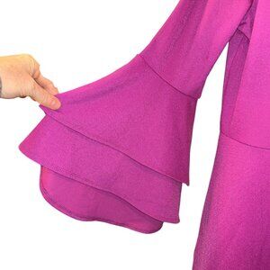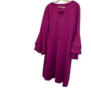 Isaac Mizrahi raspberry fuschia key hole ruffle flare sleeve dress M