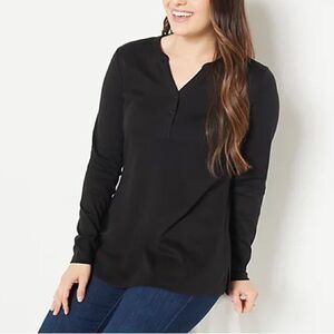 Features: Y-neckline, half placket, long sleeves