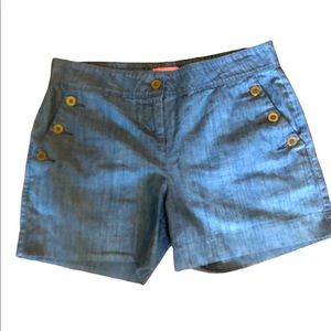 Super cute shorts by Isaac Mizrahi New York Mid rise Mid thigh 100 cotton but lighter weight No flaws in great condition Measurements in pics Size 10